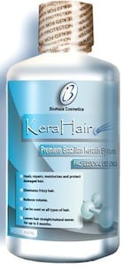 "Kerahair - is a revolutionary hair reconstructor with powerful antioxidants and human hair keratin, which leaves the hair shaft smooth. Kerahair has ingredients such as Aloe-Vera, Acai Berry, Passion Fruit, giving curl reduction and UV ray protection. No processing time is required and can be washed the same day of application leaving the hair straight or wavy."