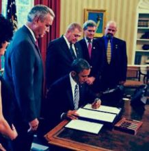 EWG worked closely with House and Senate champions and the White House to enact legislation to extend health benefits to military veterans and family members exposed to toxic chemicals at Camp Lejeune. EWG joined North Carolina legislators and other congressional leaders in pressing for the bill's passage and helped secure a White House signing ceremony. When President Obama signed the Honoring America's Veterans and Caring for Camp Lejeune Families Act, Heather White joined leading advocates Jerry Ensminger and Mike Partain at the White House.